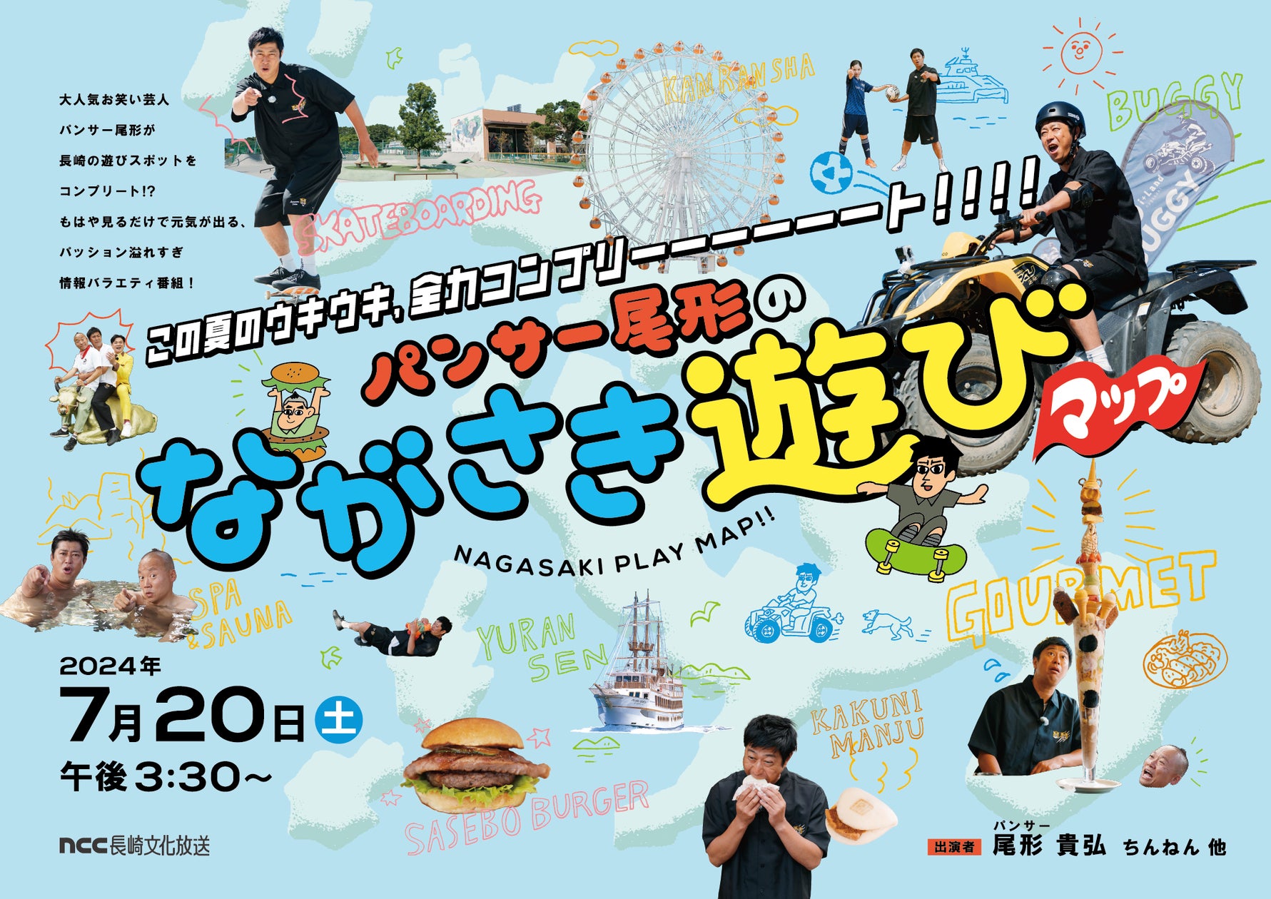 長崎文化放送株式会社のプレスリリース(2024年7月4日 10時10分)パンサー尾形が家族を想いながら遊びまわる!「パンサー尾形のながさき遊びマップ」