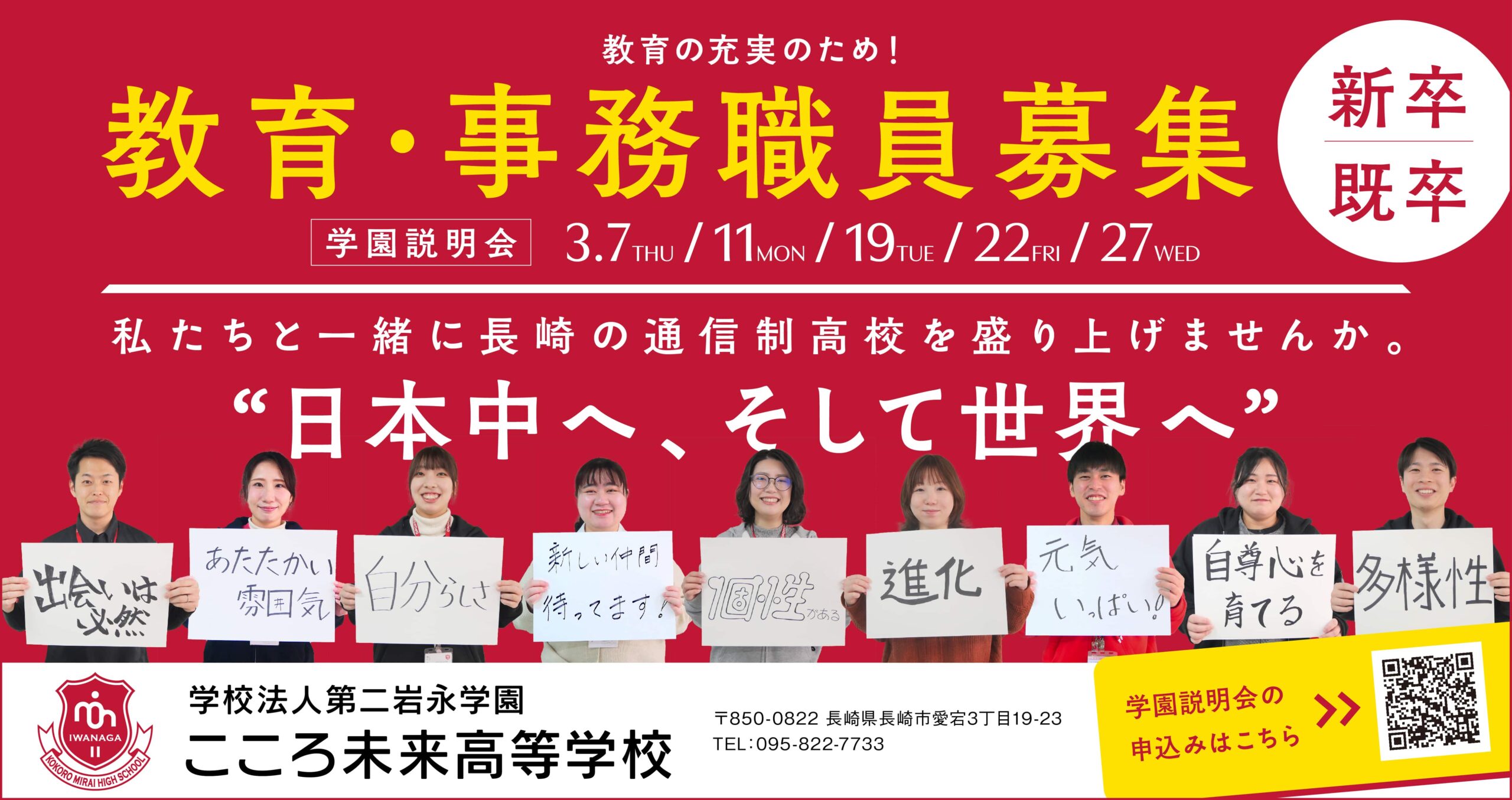 この度、教育の充実を図ることを目的として教育職員・事務職員を募集いたします。<新卒・既卒> 私たちと一緒に長崎…